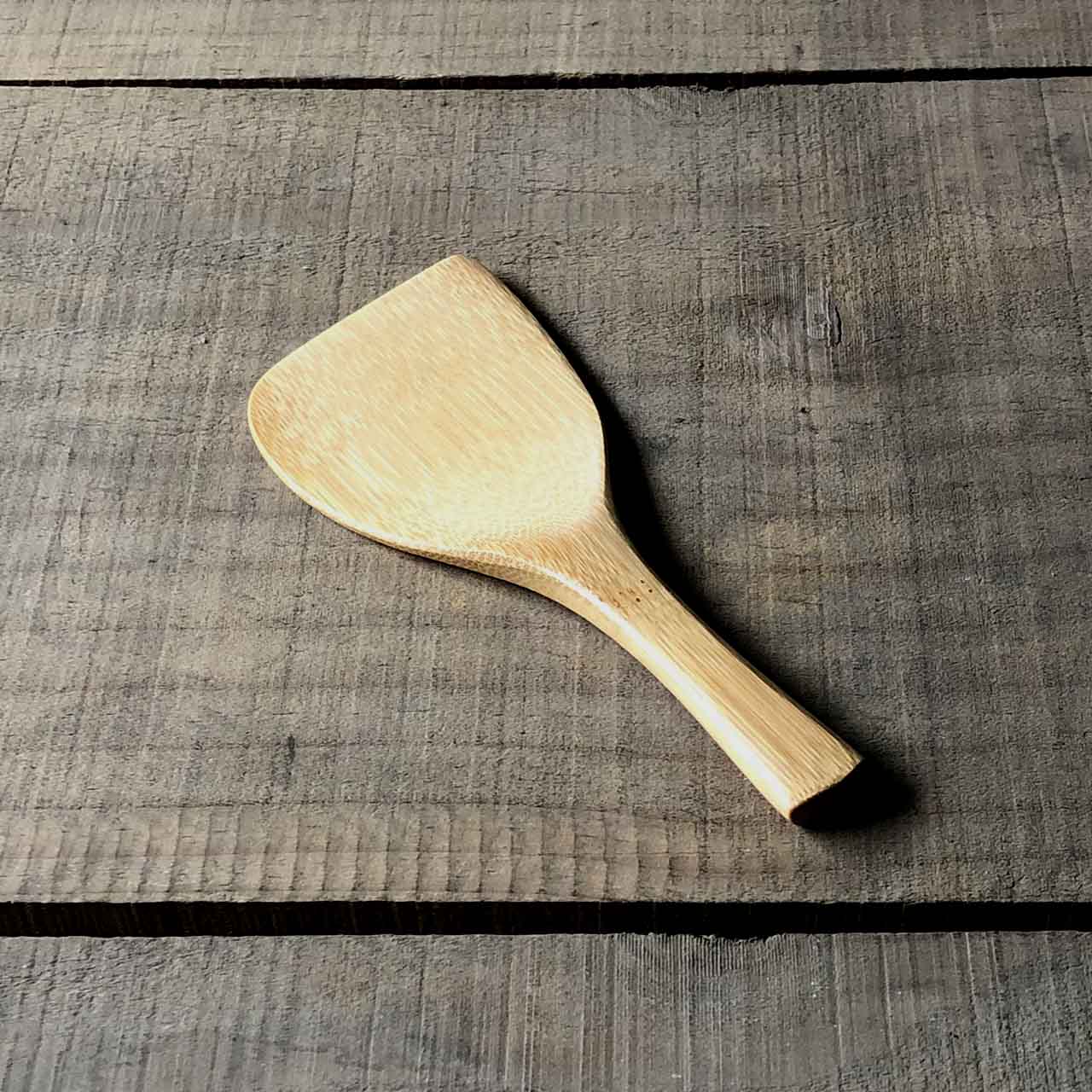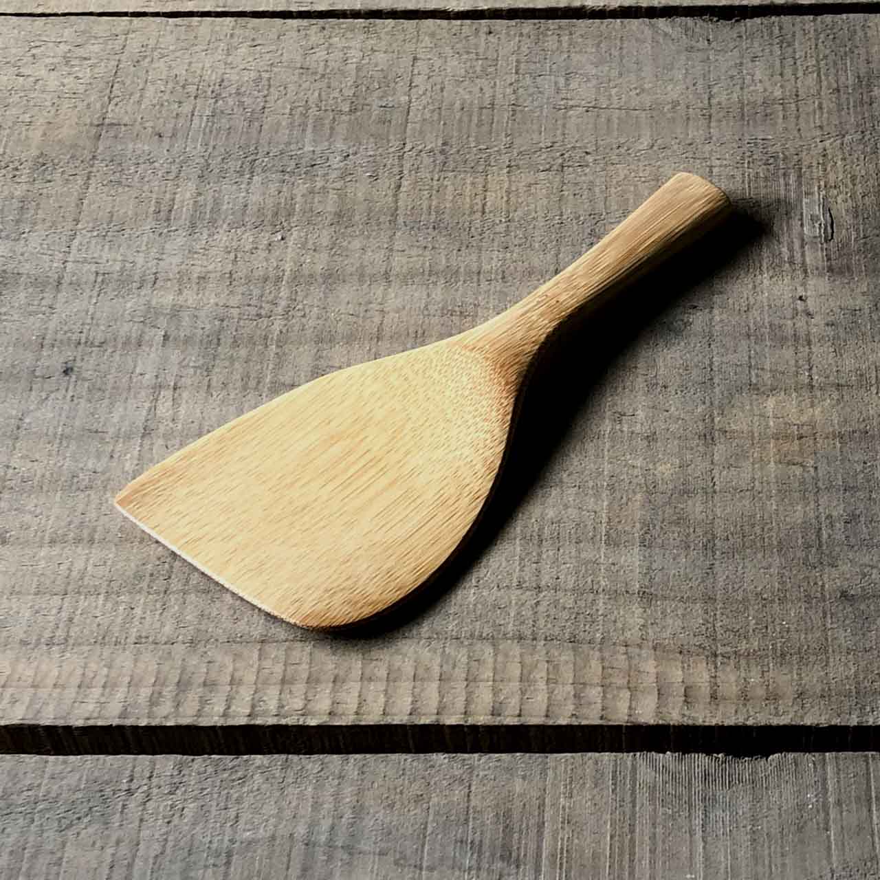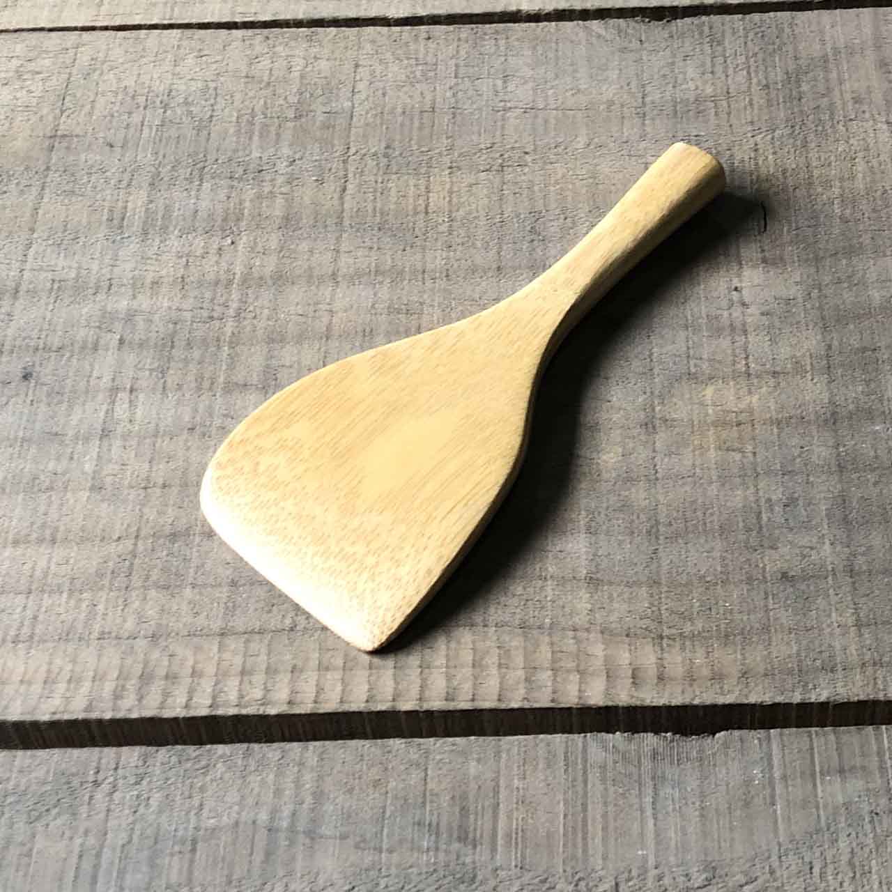 手の収まるサイズで軽く出来ています。先が薄く、縁についた味噌までしっかり取ることができます。表面は薄くウレタン塗装を施を施しています。